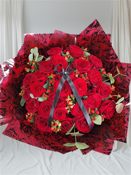 This bouquet is designed using 25 of the best premium stemmed roses (naomi rose) which are velvety to the touch.